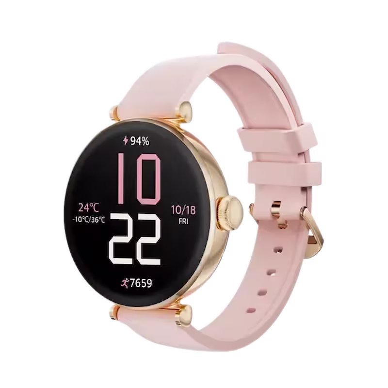 With a streamlined design in golden accent, Kieslect Pura Reno Smart Watch brings fashionable elegance to your wrists. While its beautifully round 1.19” AMOLED display presents a breathtaking navigation, the option for custom watch face promotes a personalized touch to it. To highlight its feminine charm sits a heart shaped connector which reflects grace and affection. It comes with a female menstrual reminder to make life just a bit more easy. Featuring a beautiful pink silicone strap, the watch perfectly matches any outfit in the home or away. With up to 1000 nits brightness, 100+ watchfaces, and 100 sport modes, track your vitals in style.